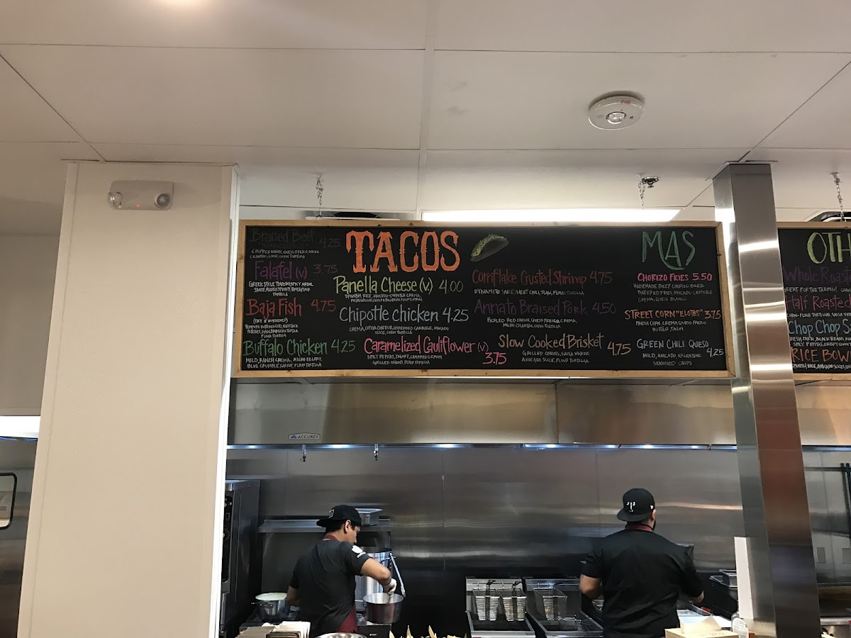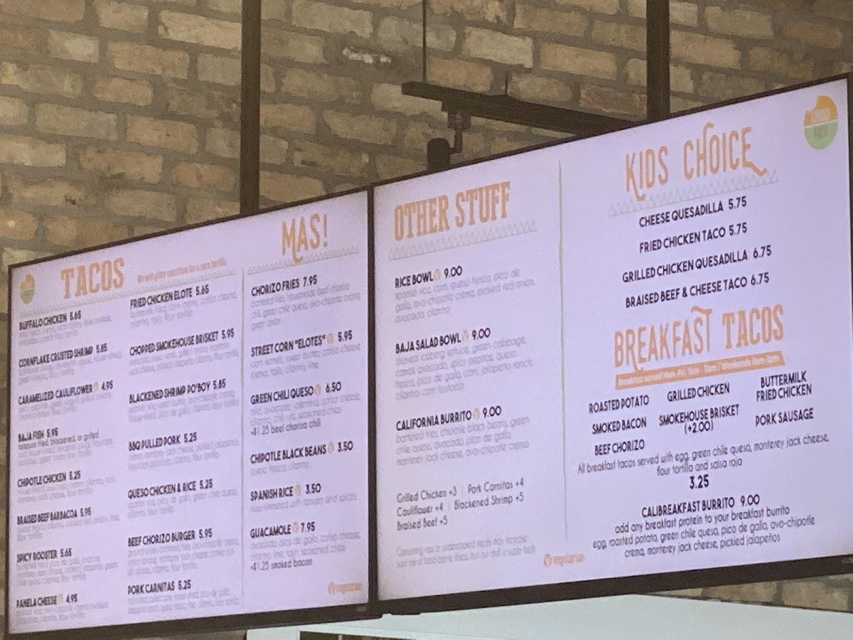 Each taco is crafted to perfection, with standout options like the Chopped Smokehouse Brisket Taco and the savory Fried Chicken Dilly Taco, both priced at just $8.60. For breakfast lovers, there's the satisfying Roasted Potato Taco served with egg and green chile queso at $5.99.